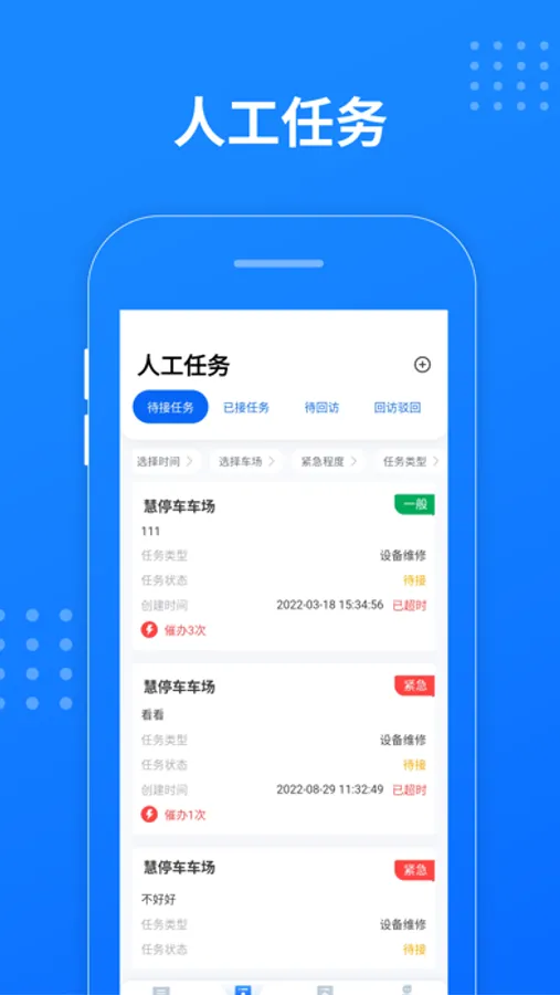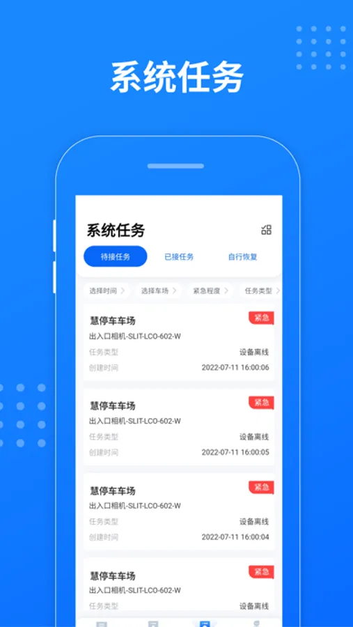 慧停车运维App专注于设备运维效率管理的解决方案,通过全面的设备运维整合服务,为您提供全方位的运维策略。通过设备监控面板,将设备与告警数据可视化展示,实时掌握设备运行情况,直观呈现车场运行的健康状态。设备告警信息实时上报,系统自动匹配到人,任务消息快速触达,以任务工单的方式流转,形成高效的工作流,量化人员的工作成果的同时,提升人员的响应速度与工作效率。