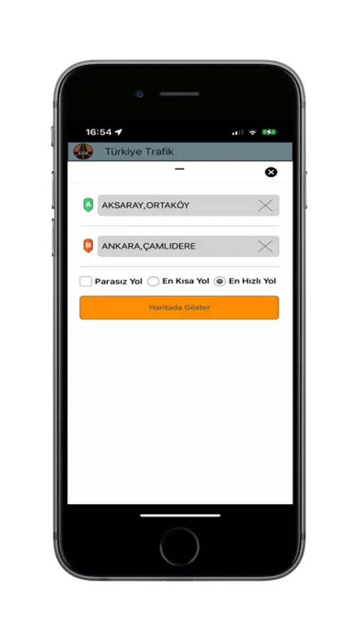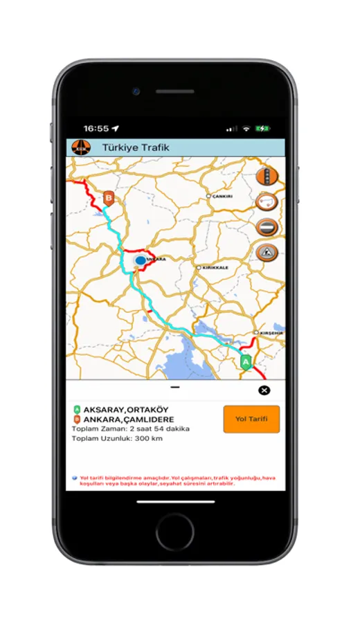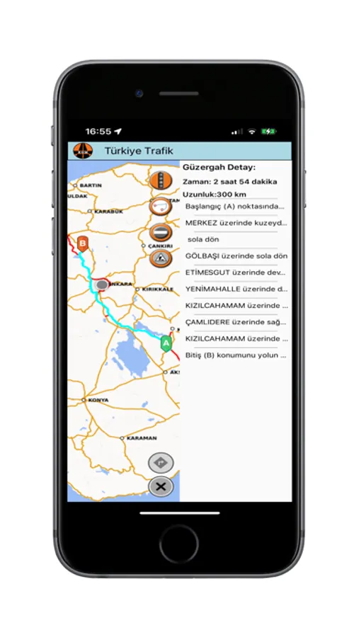 - The route to be taken between the highway, state and provincial roads can be displayed on the map and directions (according to the closed road information) can be obtained, the total distance and time can be learned, as well as information about the road condition on the route to be traveled. Access to the current traffic information is provided.