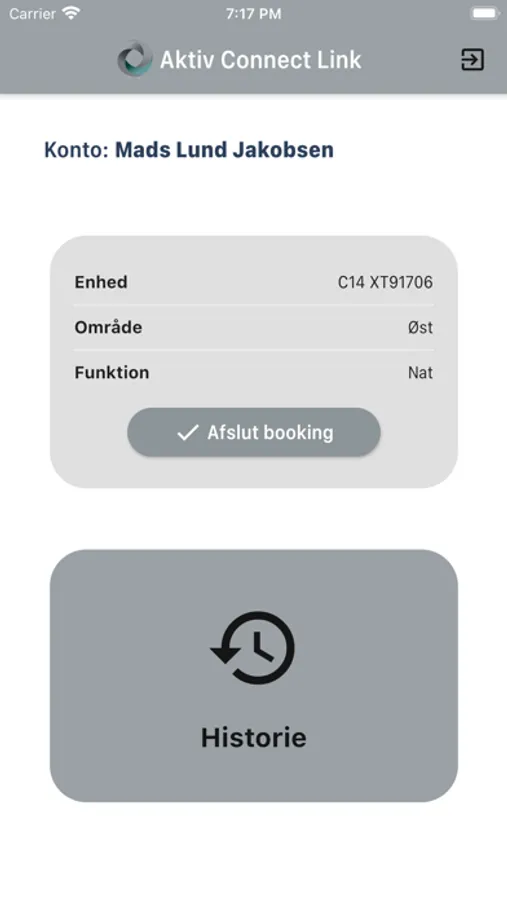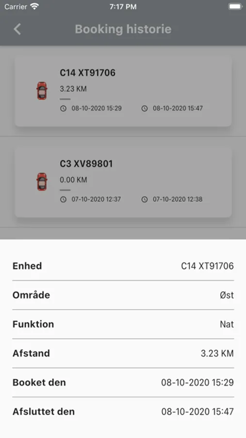 I menuen Bookinger, kan man altid se de tidligere bookinger, og hvem der er aktiv, men hvilket køretøj, og hvilket område.