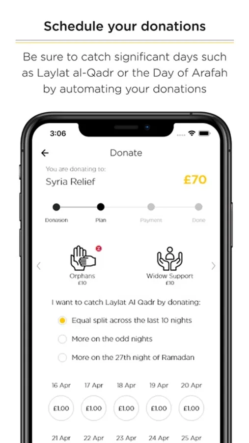 Be sure to catch significant days such as Laylat al-Qadr or the Day of Arafah by automating your donations