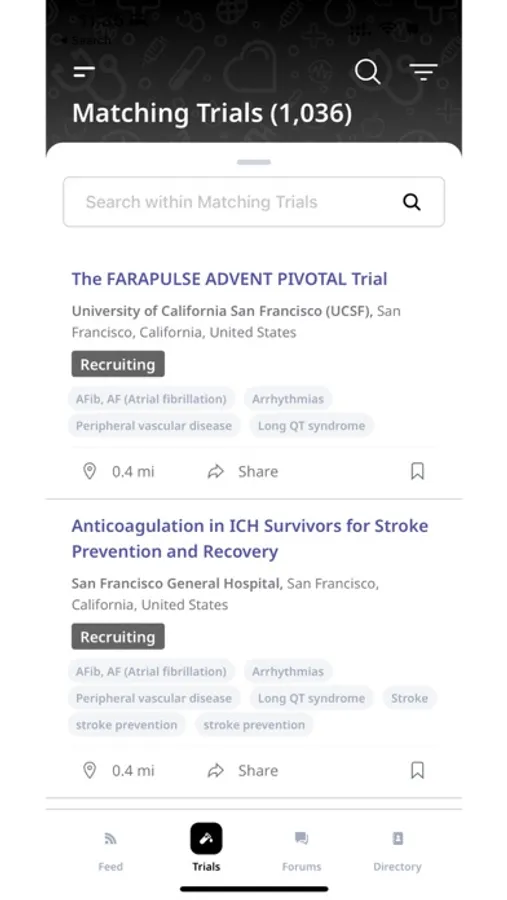 Doctors can find suitable clinical trial for their patients, join forum discussions with other doctors to discuss clinical topics and clinical trials, and join Cureitt's directory. Doctors who are conducting clinical trials can associate themselves with the clinical trial in the app to let others know that they are involved in the clinical trial and are accepting patients for the clinical trial.