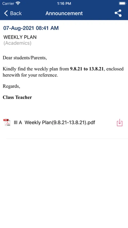 Velankanni Group Of Schools provides communication app for parents using which they can download school announcements, Class assignments, Events.