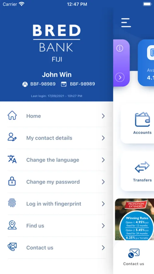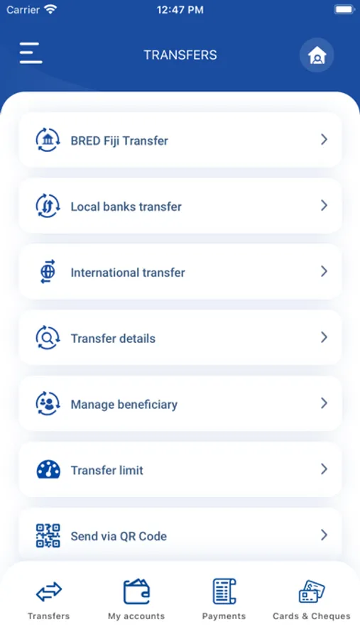 TRANSFER MONEY: Move money between your eligible account(s) at BRED or other account(s) at BRED or to another local or international bank from the comfort of your Smartphone / tablet.