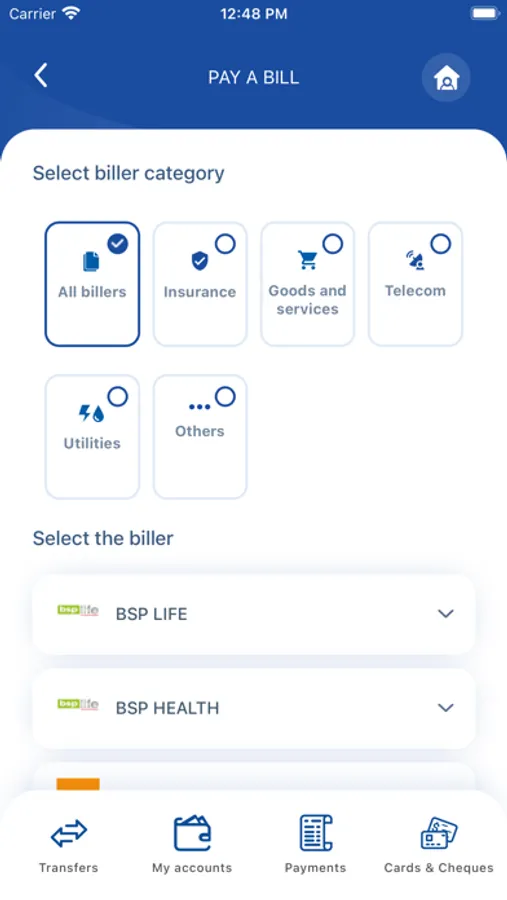 BILL PAYMENT: Pay your bills on-time with major registered billers in Vanuatu.