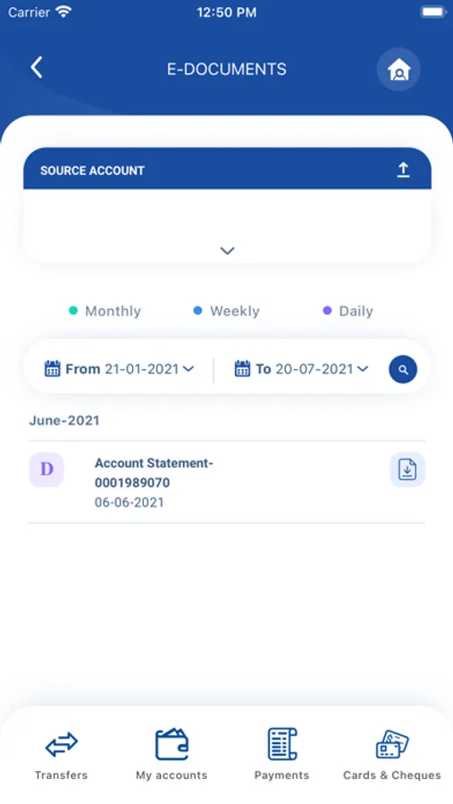 STATEMENT(S): View and download your account statement(s), bill payment history and transfer statement(s).