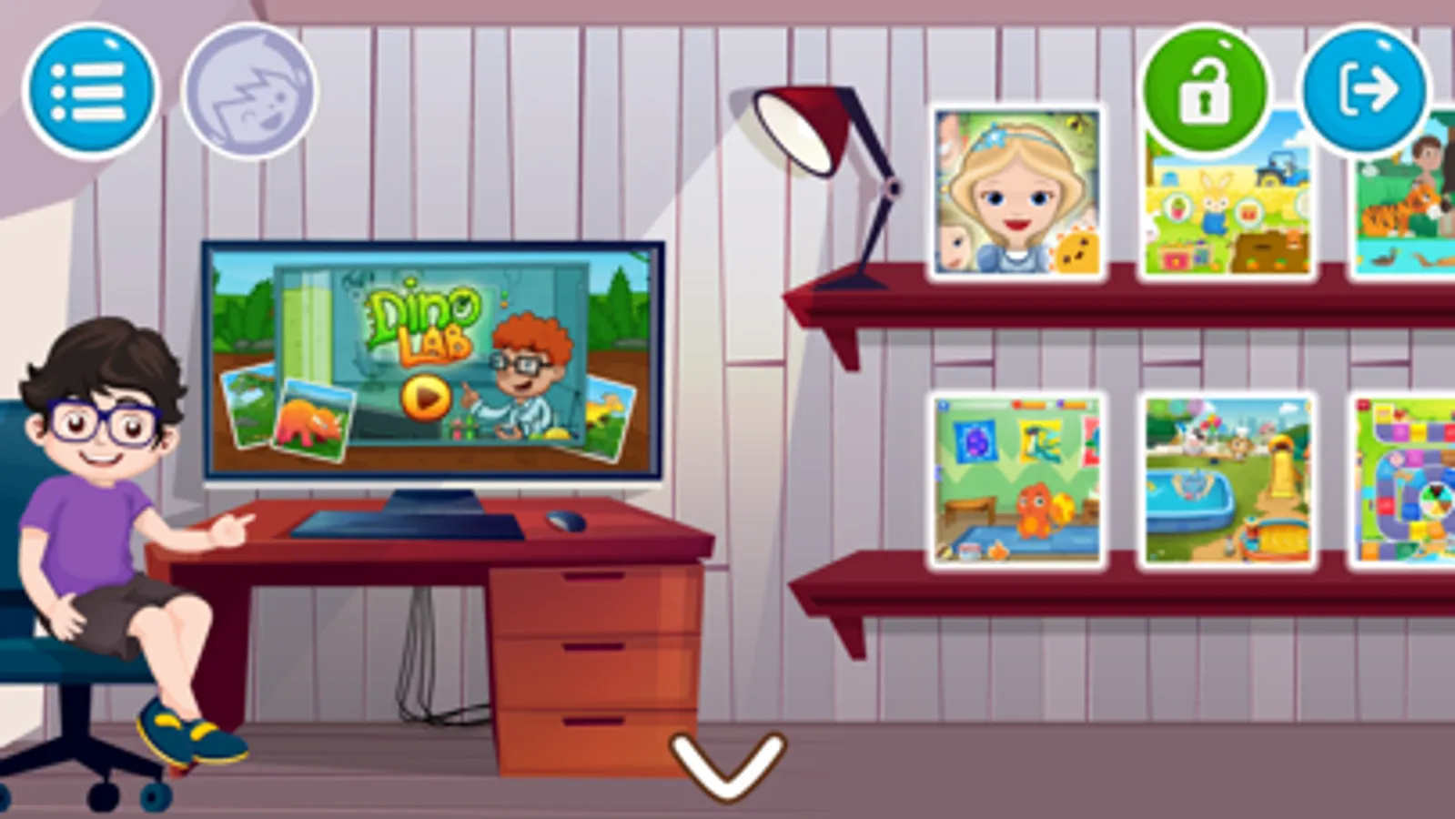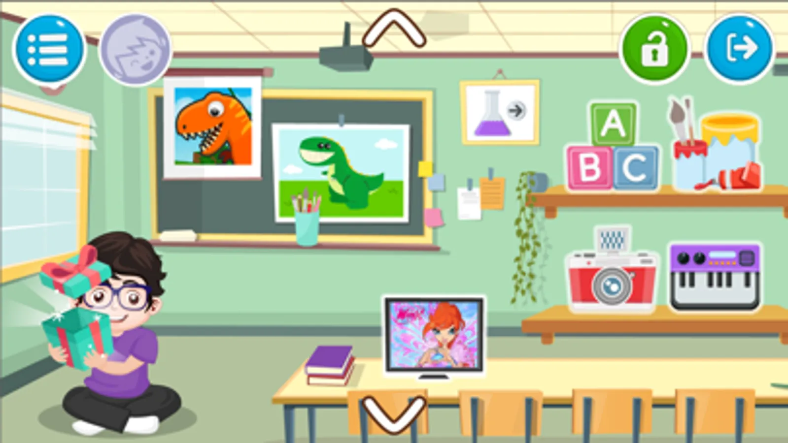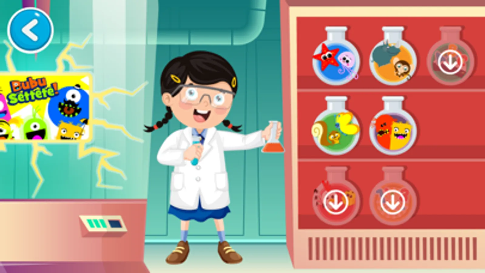 The app is designed like a “laboratory”, an environment where to learn while playing. The realm of kids' discovery in total freedom.