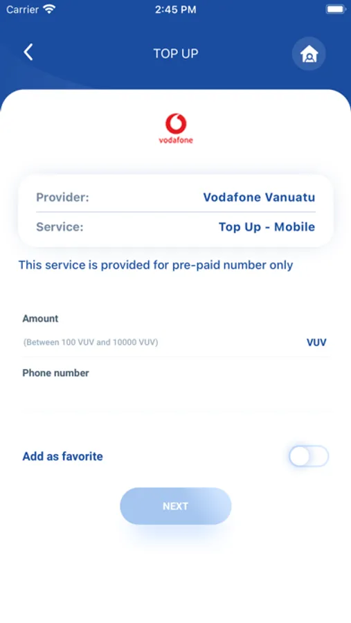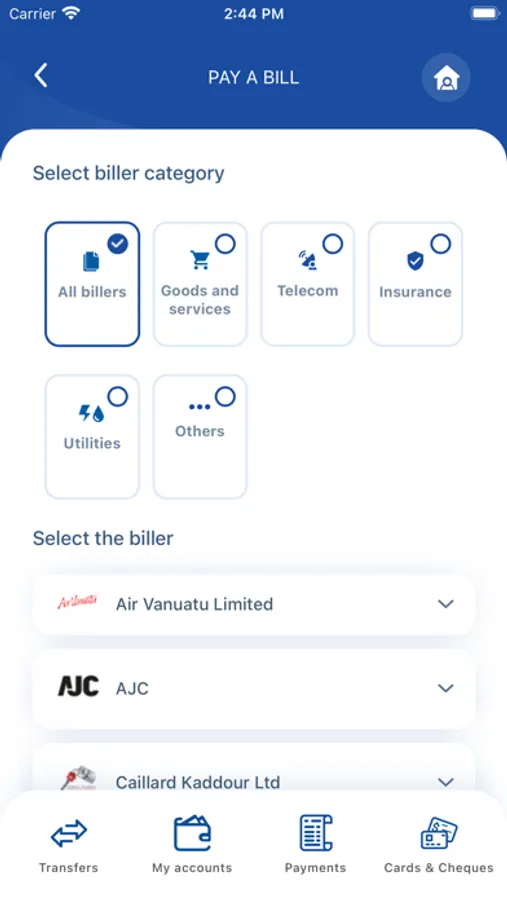 - BILL PAYMENT: Pay your bills on-time with major registered billers in Vanuatu.