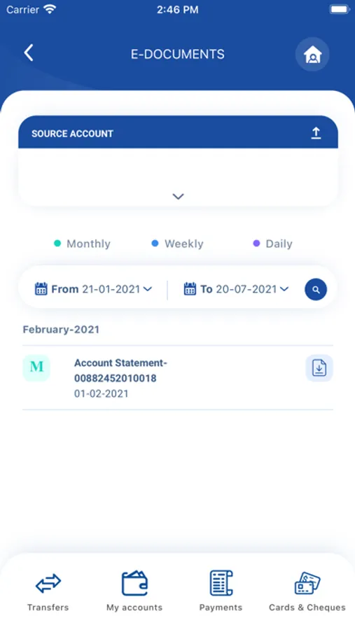 STATEMENT(S): View and download your account statement(s), bill payment history and transfer statement(s).
