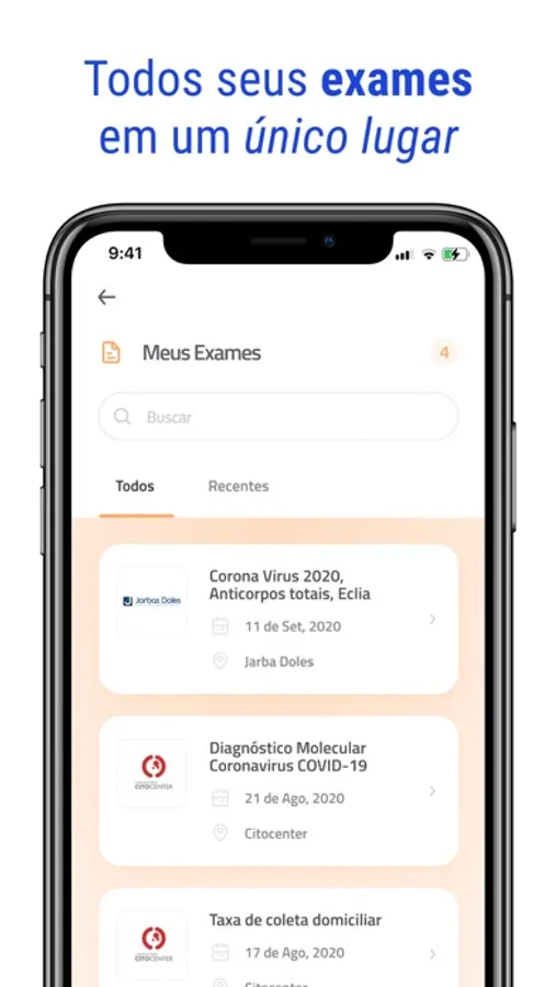 Tenha acesso a seus exames, receitas, atestados e muito mais.