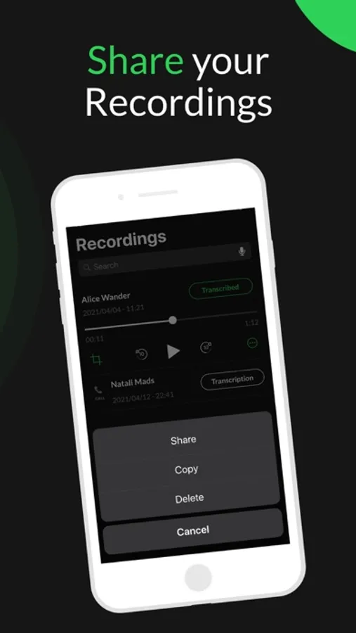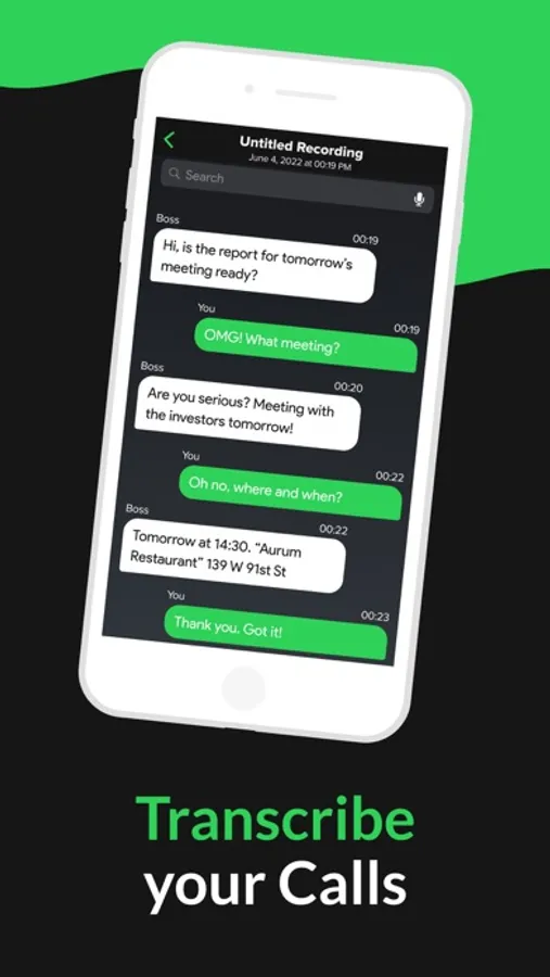 - Automated voice to text transcription: turn your call recordings into text with just one tap.Rename records if you need to;