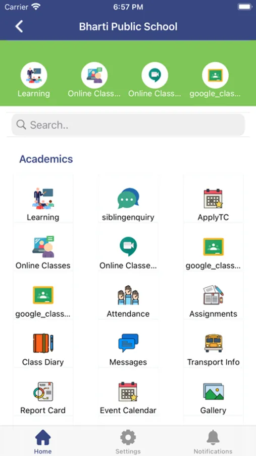 Bharti Public School provides communication app for parents using which they can download school announcements, Class assignments, can see attendance and activity.