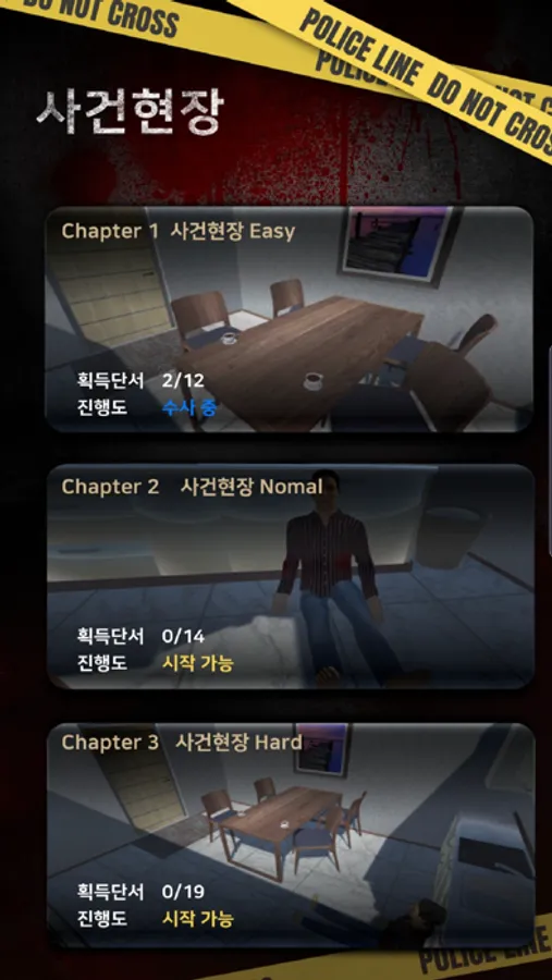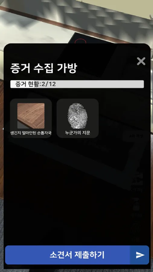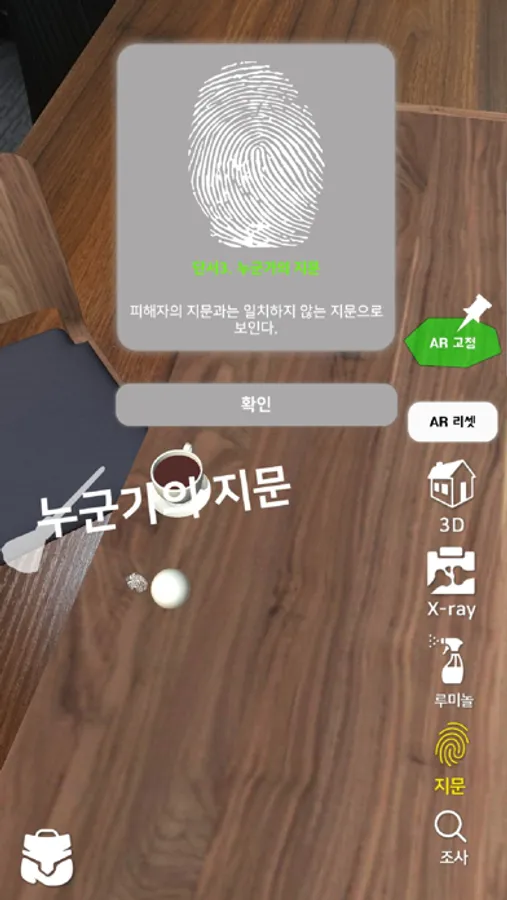 AR기반으로 각 챕터별로 아래와 같은 과학수사를 체험할 수 있습니다.