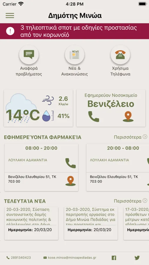 6. Άμεση Επικοινωνία με τον Δήμο μέσω τηλεφώνου, email