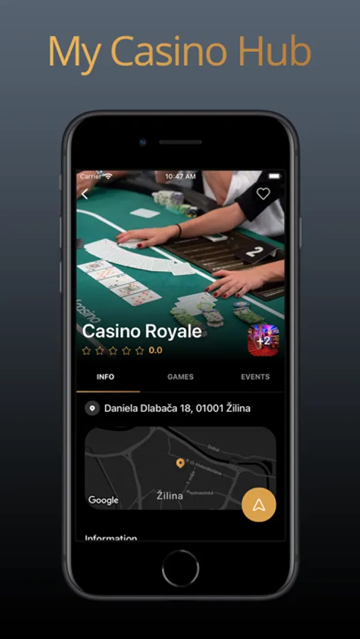 The My Casino Hub mobile app focuses on connecting card game players and casino visitors to individual casinos. You will find everything you need from gaming houses to information about them. We also focus on the calendar of card tournaments around the world. And if you are a dealer, you can find a new job opportunity through our application.