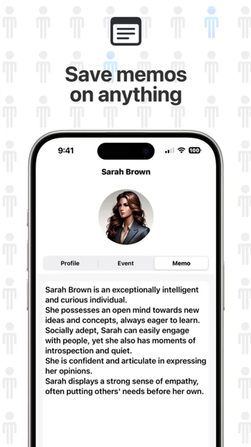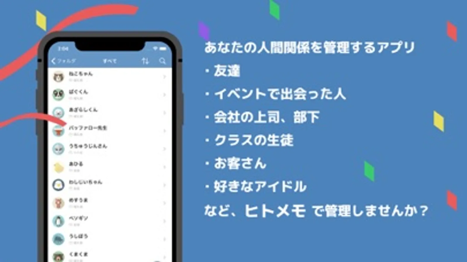 HITOMEMO is a tool for easily recording and managing such important information. Starting with a person's name, hobbies, professioin, and special anniversaries, all the data that enriches your relationship with that person is centrally managed. Keep track of even the smallest details that are often forgotten and make your daily relationships smoother and more pleasant.