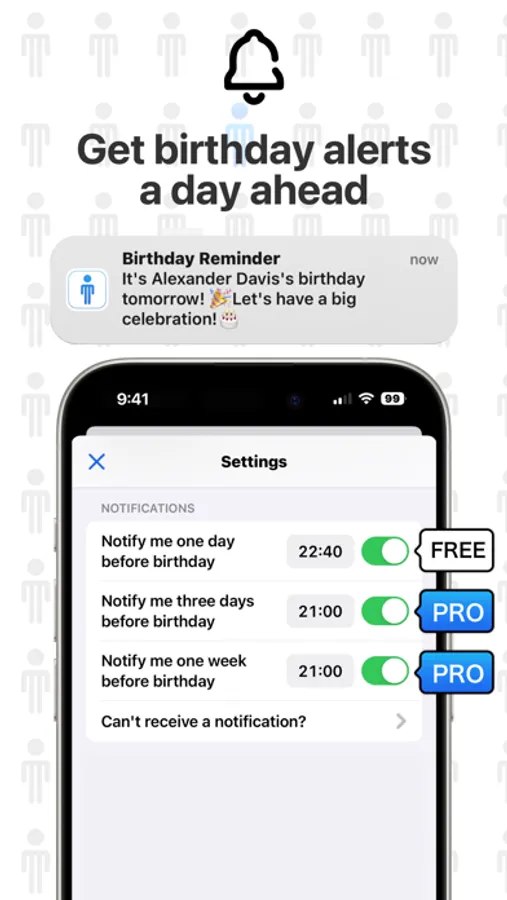 Birthday reminders: Notify you in advance of your loved ones' birthdays so you don't forget to congratulate them.