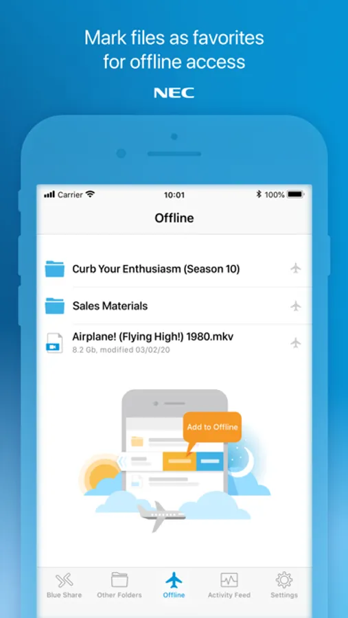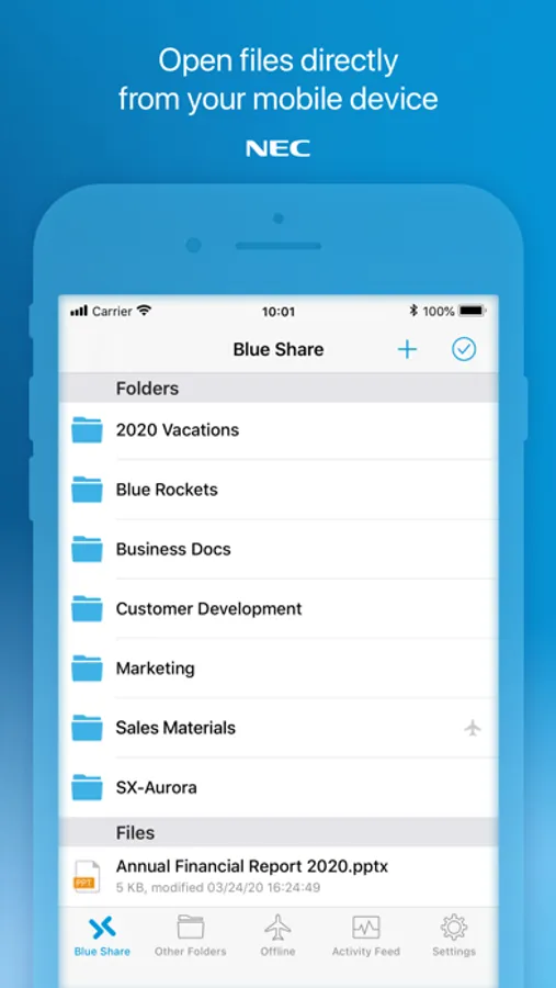 • Upload files from your mobile device to your UNIVERGE BLUE™ SHARE folder
