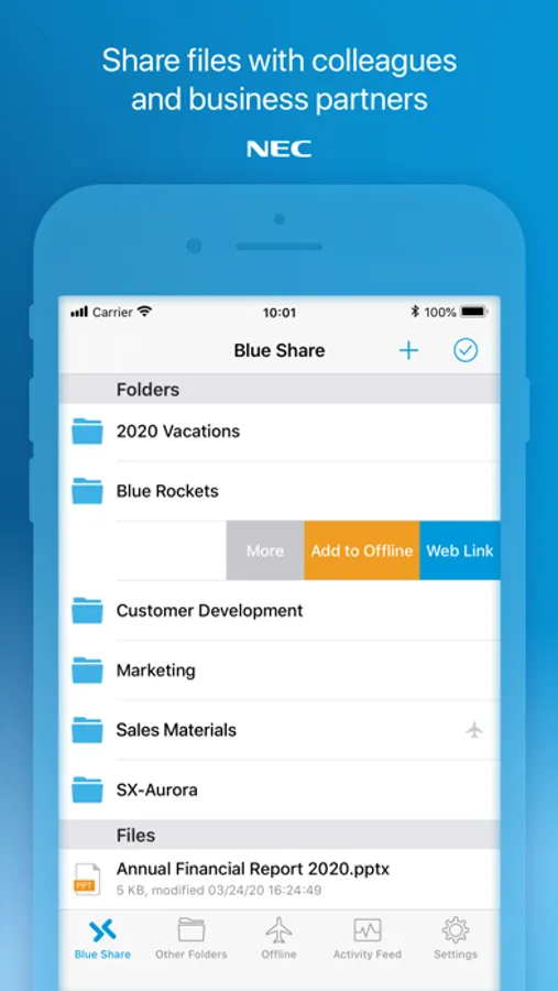 With the UNIVERGE BLUE™ SHARE mobile app, you can: