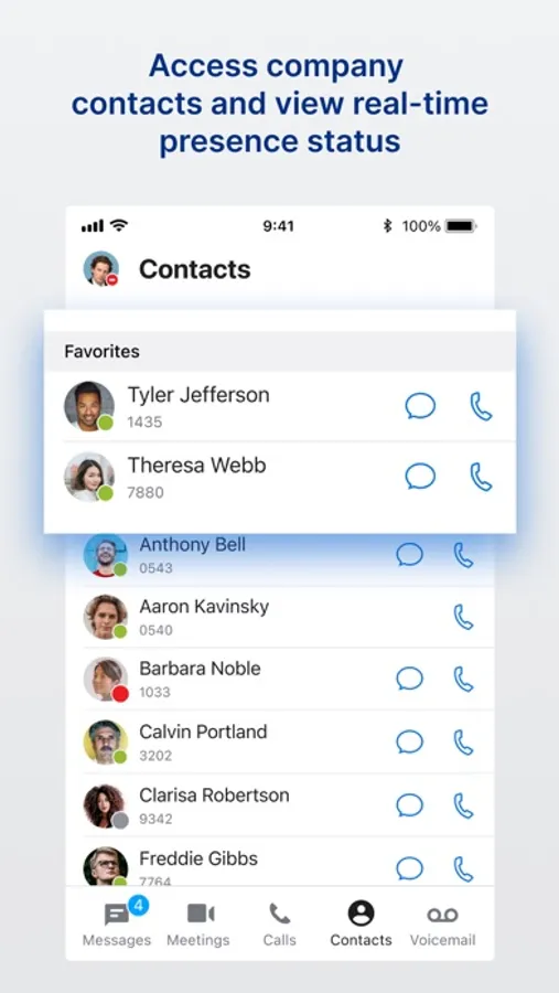 The UNIVERGE BLUE™ CONNECT mobile application transforms your mobile phone into an essential collaboration tool, making teamwork on-the-go easier than ever. Place and receive calls, see who is available, send chat and SMS messages, and manage voicemails all from one application — anytime, anywhere.