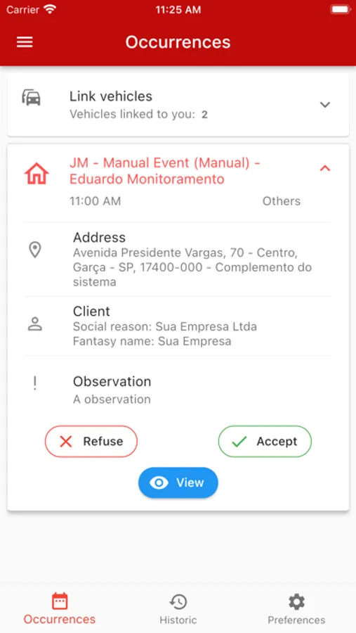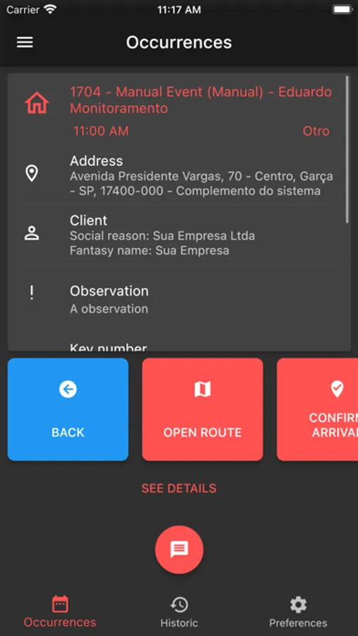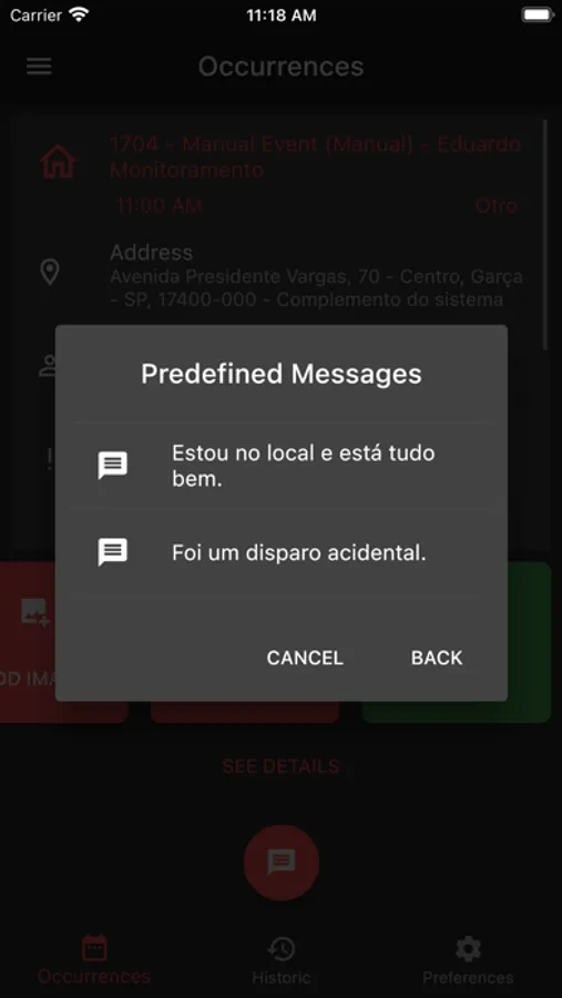 - Communicate to the Monitoring Center that has already arrived at the scene of the incident;