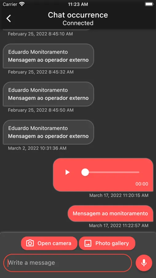- Chat to exchange messages and direct audio with the Monitoring Center Operator;