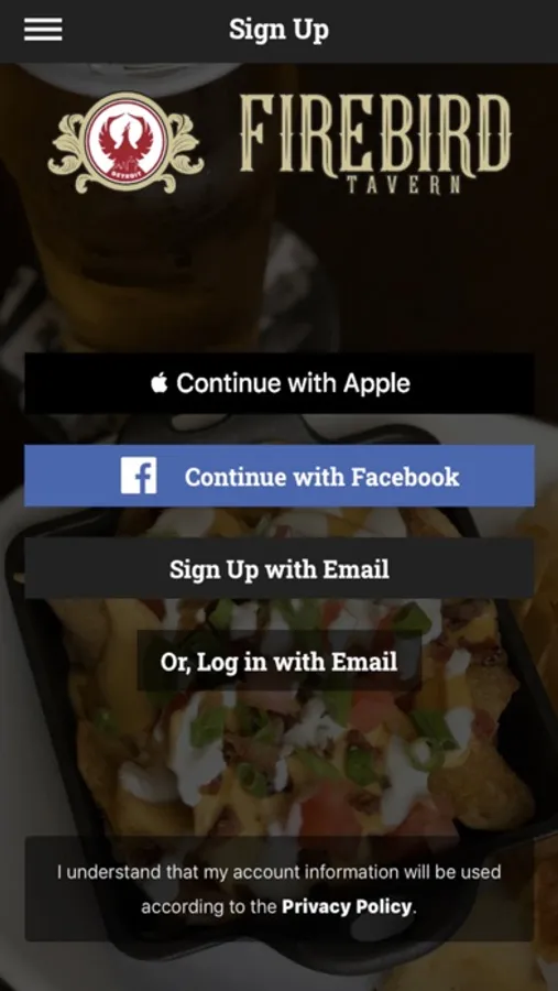 Welcome to the Firebird Tavern App. Order individual or take-and-bake meals for 3-4 folks, NA beverages, beer, wine and liquor with the Firebird Tavern app. Firebird Rewards members can place orders and earn points towards their next reward. Sign in and place an order for pickup and enjoy a tasty meal!