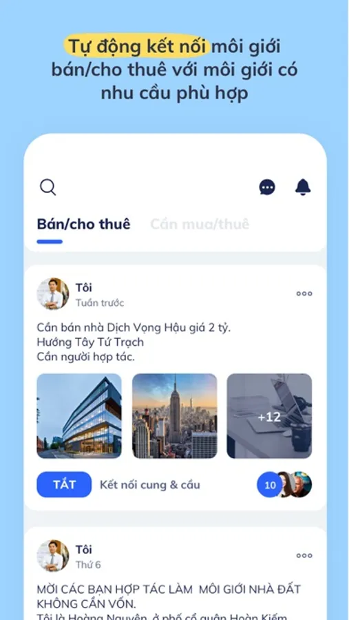 - Tự động kết nối môi giới bán/cho thuê với môi giới có nhu cầu phù hợp