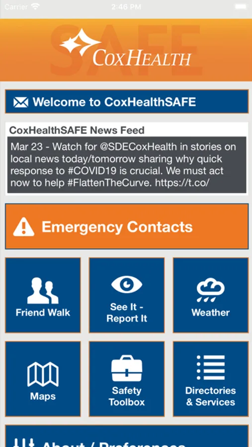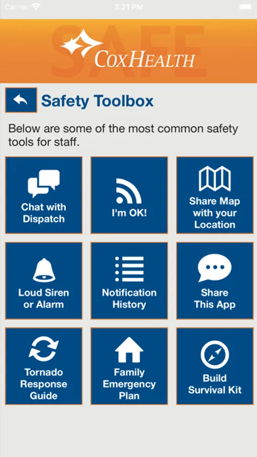 - Safety Notifications: Receive instant notifications and instructions from CoxHealth safety when on-campus emergencies occur.