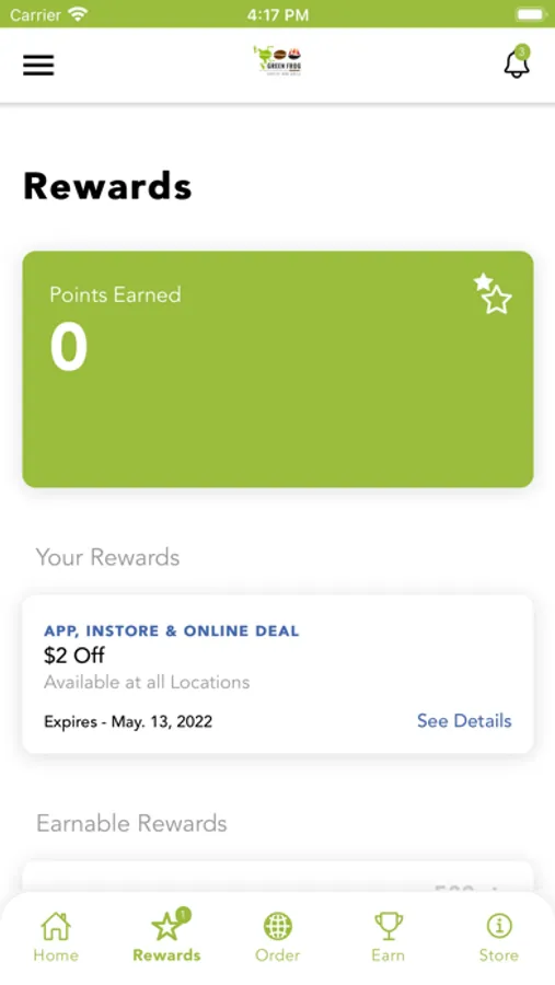 Green Frog Coffee Rewards App - Earn and track your rewards at participating stores!
