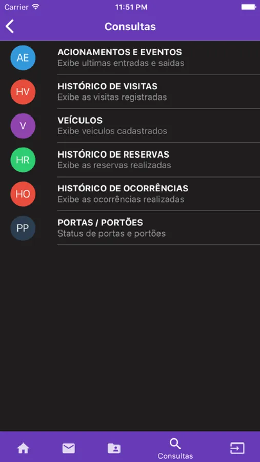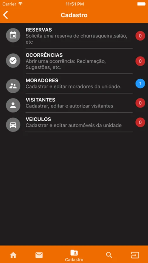 - Reservas de áreas comuns (Churrasqueira, Salão de festa, etc (Se tiver habilitado para o seu condomínio)