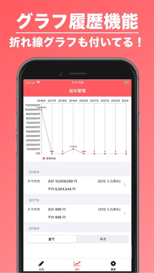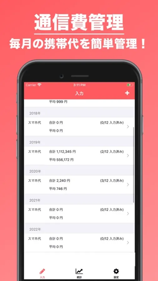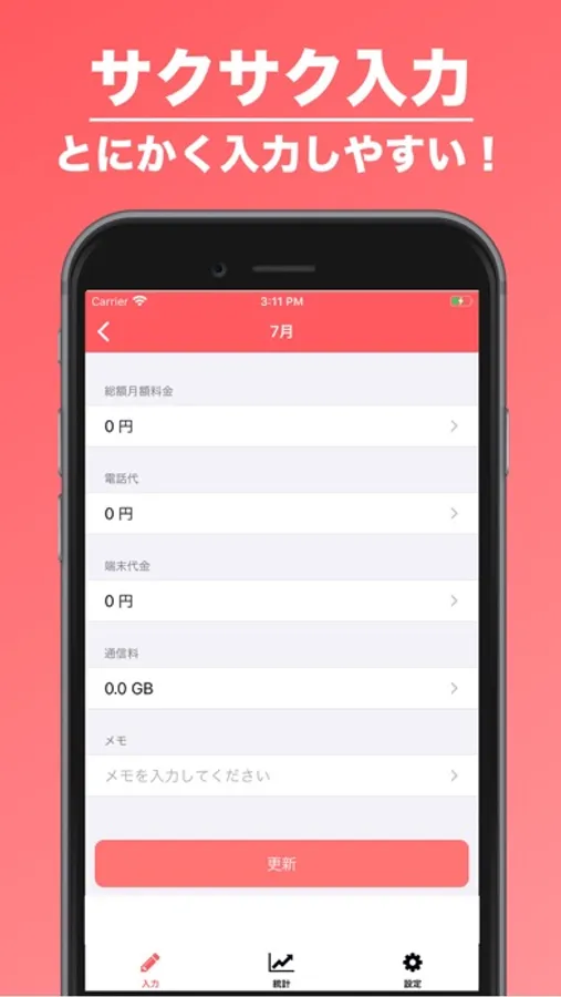 通信費管理は、毎月のスマホや携帯代を簡単に把握することができるアプリです。簡単に、日々の記録を入力・記録できるので、便利ですよ!
