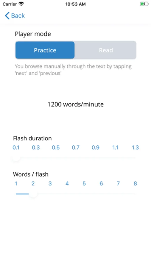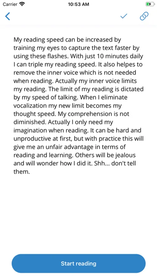 • Practice mode - navigate yourself through text so that your eyes can get accustomed to this type of reading