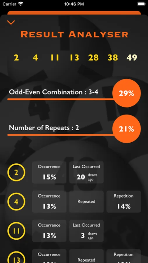 - A convenient feature to pull all relevant statistics for a draw result or your new bet and display them in one page.