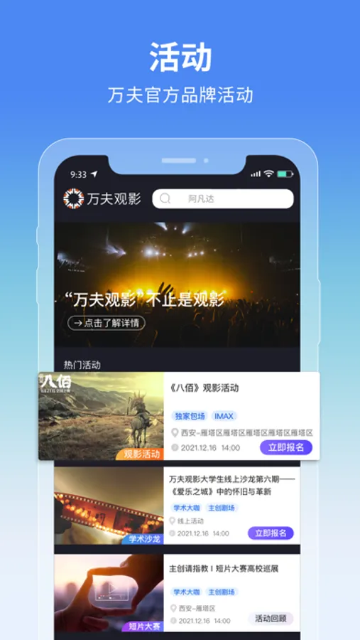 组织线下观影活动,可报名参与线下活动并对线下活动进行评论和投票。