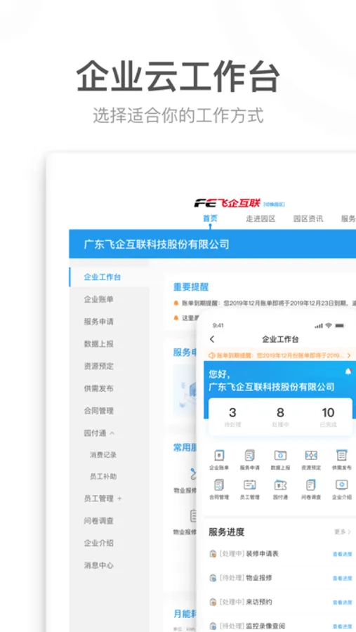 园区企业和职工通过App,可以享受园区方提供的优质服务。在App上即可便捷使用与企业、生活息息相关的服务,而免去了来回奔波的过程。