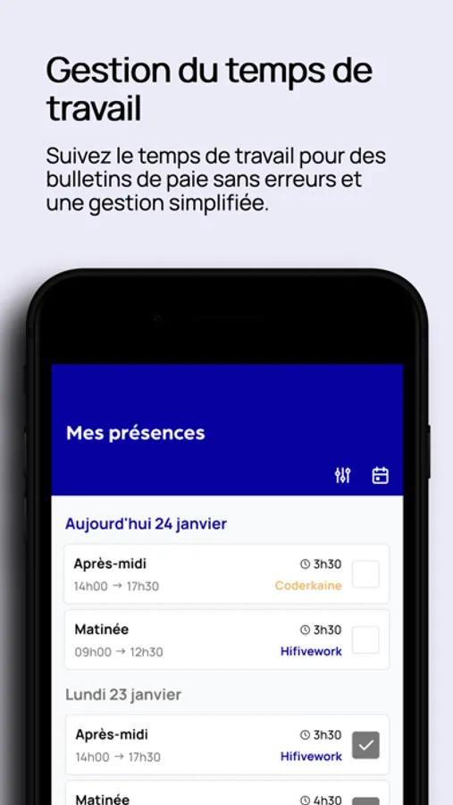 HiFiveWork Mobile offre les fonctionnalités suivantes :