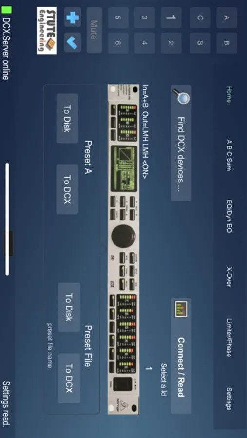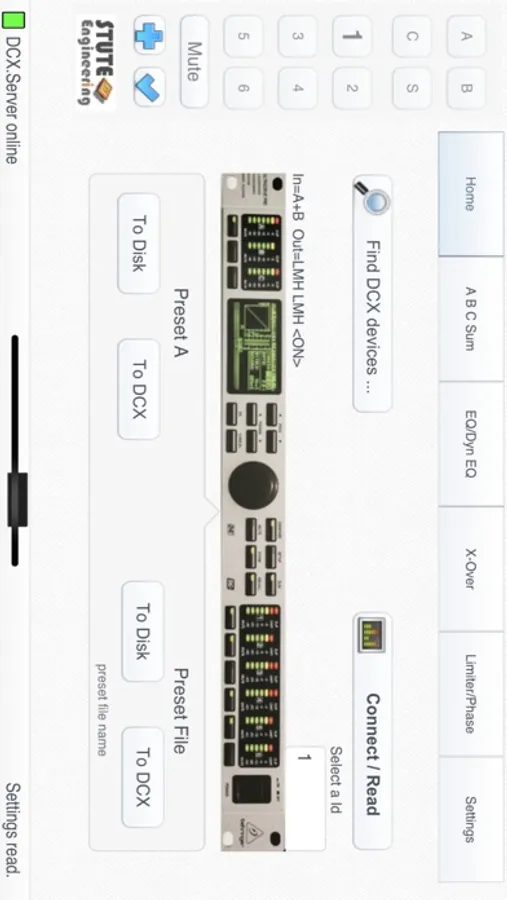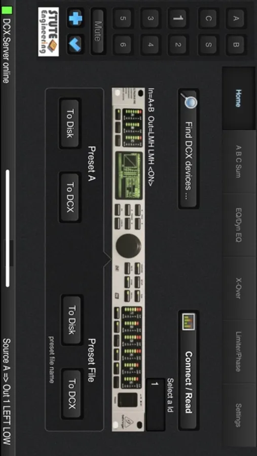 Wi-Fi remote control system for the Behringer DCX2496 device.
