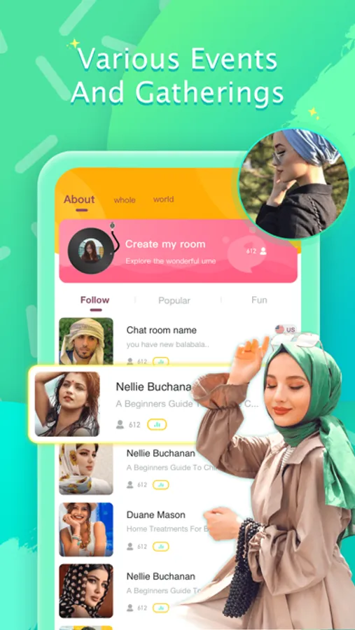 You can create your room at any time, invite your friends and family to join your room for online parties, participate in your favorite activities, Singing competitions, talent PK, Game competitions, etc. More activities are waiting for you to participate in, enjoy life & Have fun.