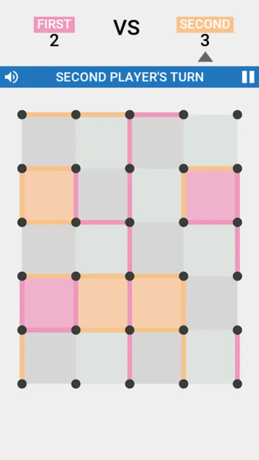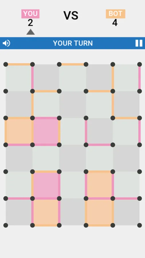Dot & Boxes - Classic is a simple & interesting strategy game. Starting with an empty grid of dots, two players take turns adding a single horizontal or vertical line between two adjacent dots. The player who completes the fourth side of a 1×1 square box earns one point and takes another turn. The game ends when no more lines can be placed. The winner is the player with the most points/grids.