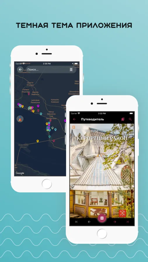 - информация о том, куда сходить, что посмотреть, где остановиться и чем занять свой досуг; - встроенная карта Курортного района Санкт-Петербурга.