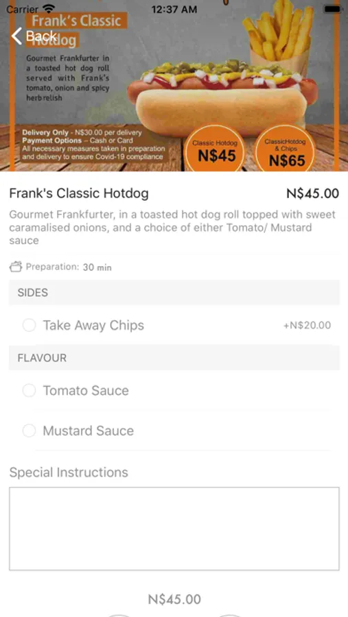 • For a delivery order, a Tap a Meal driver will collect the order and deliver to you anywhere in Windhoek (Namibia)