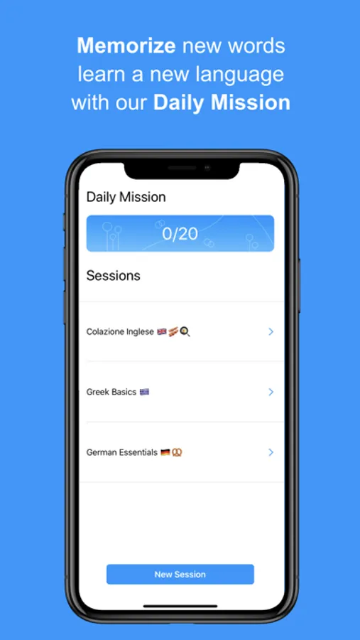 We've ideated a Daily Mission, it consists to repeat 20 words during the day with our system. It takes no more than 10 minutes and it works offline. Doing this every day you will easily remember new words.