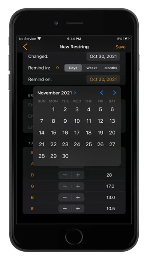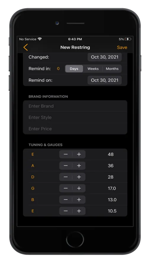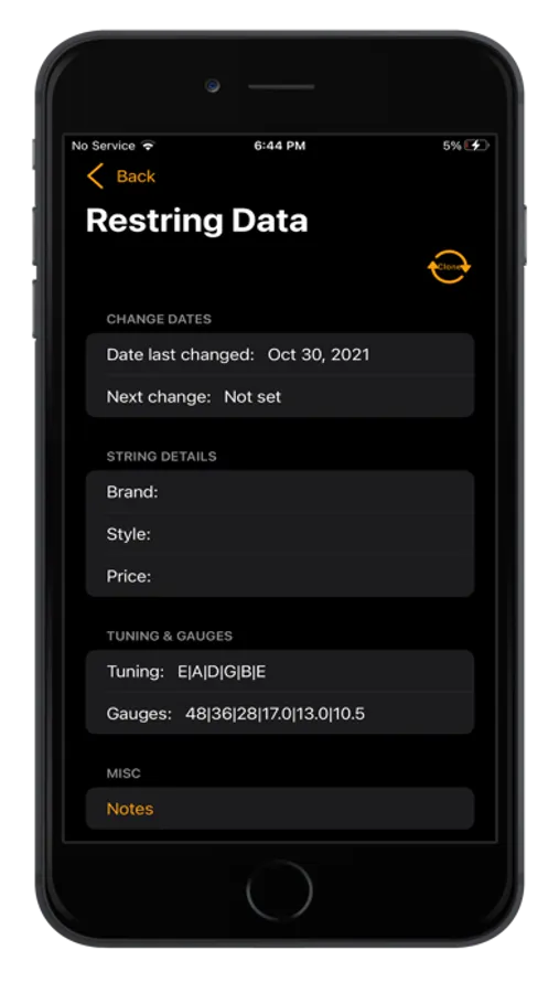 StringKing logs information about all of your string changes. With iCloud syncing, you can track changes with multiple devices such as iPads, iPhones, and Macs. Whether you are a professional musician, technician, collector, instructor, or hobbyist, you can log the brand of strings, the gauges of strings, price, as well as remember any non-standard tunings on your instruments. StringKing keeps a running log on your device, with dates of each string change, and you can also set reminders to change your strings. In addition to the details above, you can also store notes about your experience with specific brands, gauges, and tunings. StringKing is ideal for instruments with 4 to 12 strings.