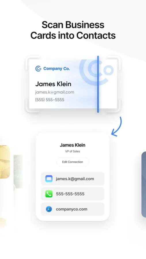 - Scan business cards into digital contacts with our AI powered Business Card Scanner