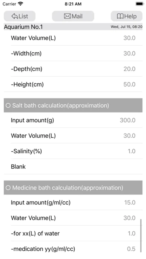 - Salt bath salt content calculation: salt content, aquarium volume, salt concentration