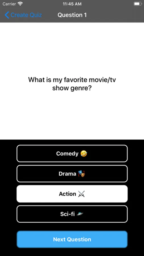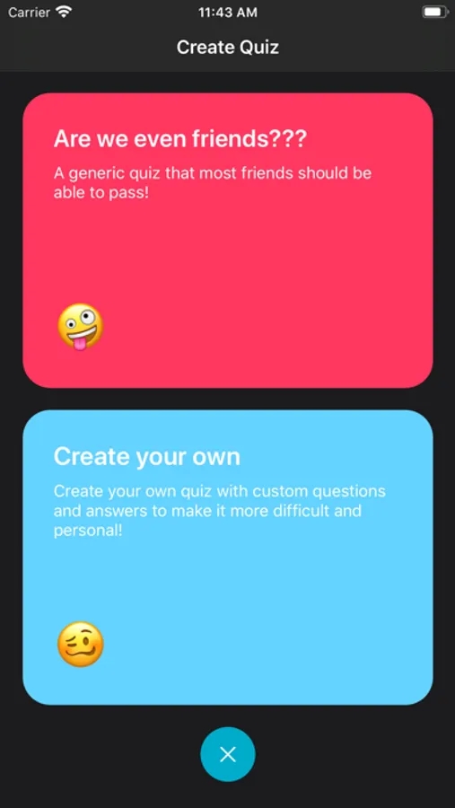 - Fill out a generic quiz or create your own quiz with up to 10 questions.