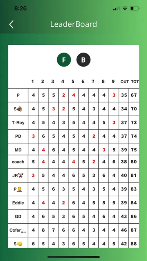 The Leaderboard will quickly display the scores from lowest to highest.