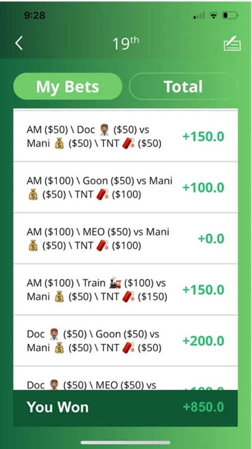 View what you and everyone else have won or lost in the 19th hole Tab