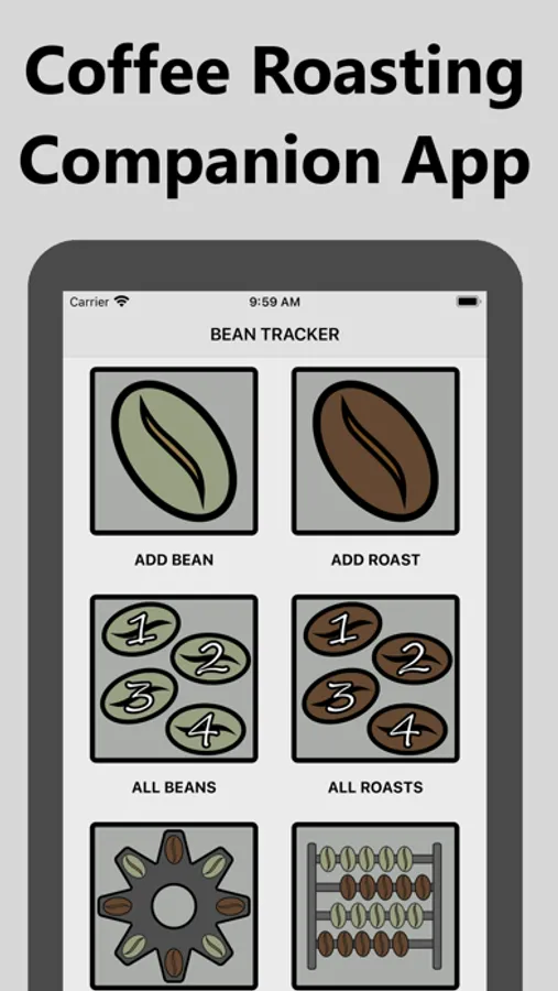 Bean Tracker is a coffee roasting app that allows you to oversee all your coffee roasting. Manage green beans and roasts, rate your roasts to discover which beans are working best for you.