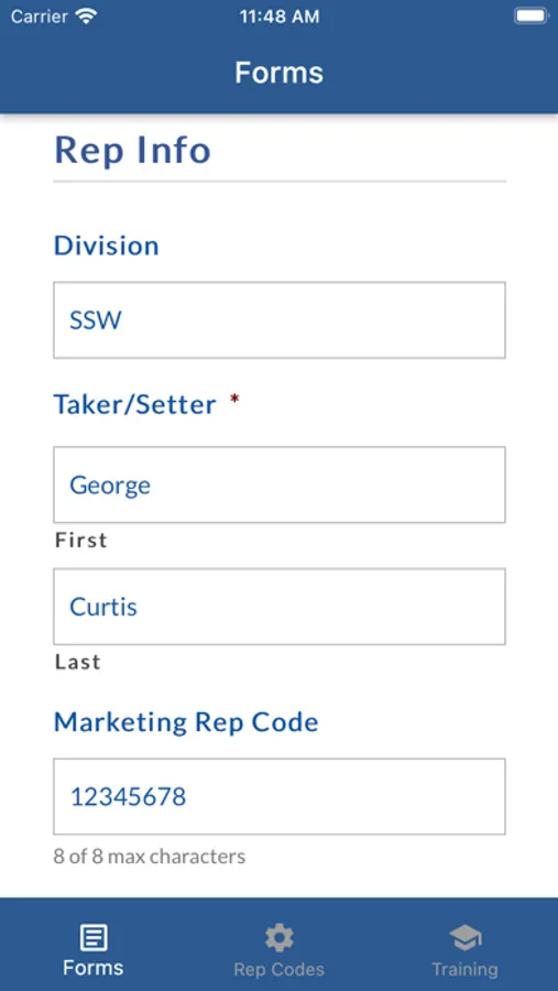 2) Access various form, depending on the division for which you are entering leads